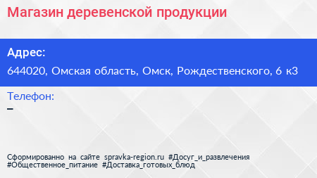 Магазин деревенской продукции по адресу 644020, Омская область, Омск, Рождественского, 6 к3 в дальнейшем Организация, размещена в следующих категориях: