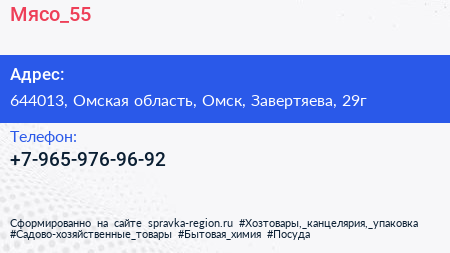 Мясо_55 по адресу 644013, Омская область, Омск, Завертяева, 29г в дальнейшем Организация, размещена в следующих категориях: