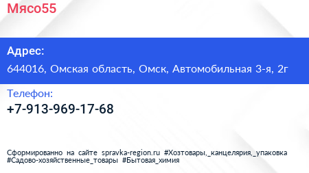 Мясо55 по адресу 644016, Омская область, Омск, Автомобильная 3-я, 2г в дальнейшем Организация, размещена в следующих категориях: