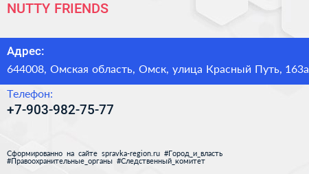 NUTTY FRIENDS по адресу 644008, Омская область, Омск, улица Красный Путь, 163а в дальнейшем Организация, размещена в следующих категориях: