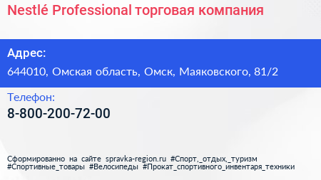 Nestlé Professional, торговая компания по адресу 644010, Омская область, Омск, Маяковского, 81/2 в дальнейшем Организация, размещена в следующих категориях: