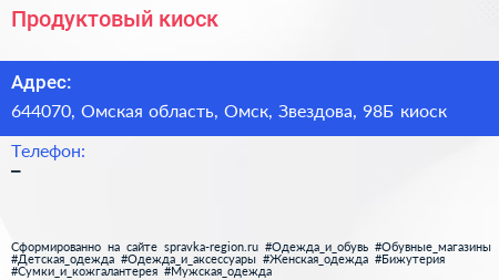 Продуктовый киоск по адресу 644070, Омская область, Омск, Звездова, 98Б киоск в дальнейшем Организация, размещена в следующих категориях:
