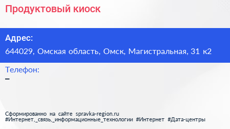 Продуктовый киоск по адресу 644029, Омская область, Омск, Магистральная, 31 к2 в дальнейшем Организация, размещена в следующих категориях: