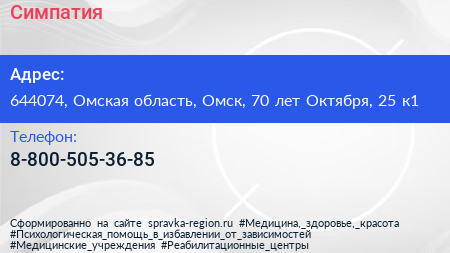 Симпатия по адресу 644074, Омская область, Омск, 70 лет Октября, 25 к1 в дальнейшем Организация, размещена в следующих категориях:
