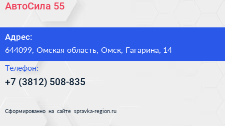 АвтоСила-55 по адресу 644099, Омская область, Омск, Гагарина, 14 в дальнейшем Организация, размещена в следующих категориях: