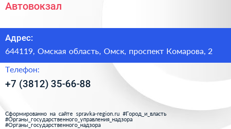 Автовокзал по адресу 644119, Омская область, Омск, проспект Комарова, 2 в дальнейшем Организация, размещена в следующих категориях: