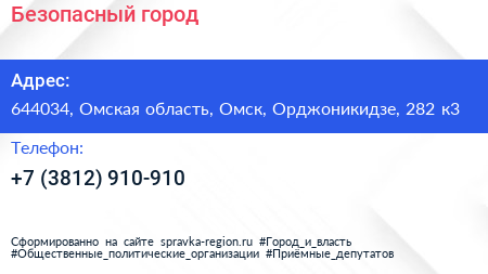 Безопасный город по адресу 644034, Омская область, Омск, Орджоникидзе, 282 к3 в дальнейшем Организация, размещена в следующих категориях: