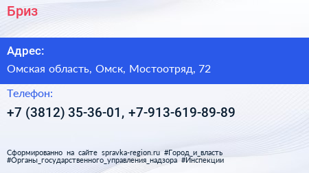 Бриз по адресу Омская область, Омск, Мостоотряд, 72 в дальнейшем Организация, размещена в следующих категориях: