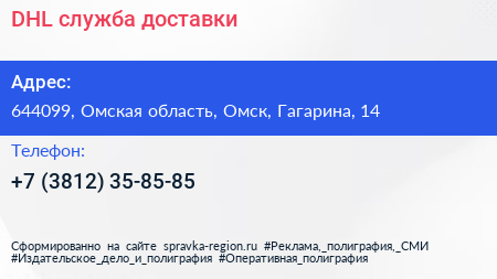 DHL, служба доставки по адресу 644099, Омская область, Омск, Гагарина, 14 в дальнейшем Организация, размещена в следующих категориях: