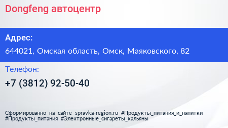 Dongfeng, автоцентр по адресу 644021, Омская область, Омск, Маяковского, 82 в дальнейшем Организация, размещена в следующих категориях: