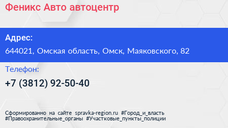 Феникс-Авто, автоцентр по адресу 644021, Омская область, Омск, Маяковского, 82 в дальнейшем Организация, размещена в следующих категориях: