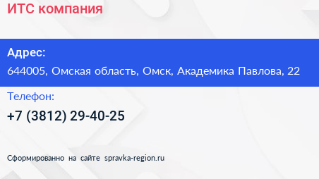 ИТС, компания по адресу 644005, Омская область, Омск, Академика Павлова, 22 в дальнейшем Организация, размещена в следующих категориях: