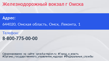 Железнодорожный вокзал г. Омска по адресу 644020, Омская область, Омск, Леконта, 1 в дальнейшем Организация, размещена в следующих категориях: