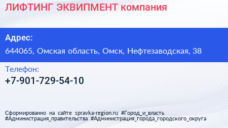 ЛИФТИНГ ЭКВИПМЕНТ, компания по адресу 644065, Омская область, Омск, Нефтезаводская, 38 в дальнейшем Организация, размещена в следующих категориях: