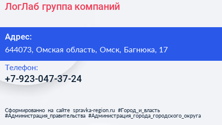 ЛогЛаб, группа компаний по адресу 644073, Омская область, Омск, Багнюка, 17 в дальнейшем Организация, размещена в следующих категориях:
