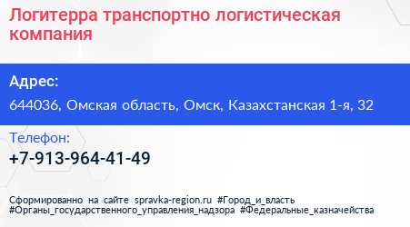 Логитерра, транспортно-логистическая компания по адресу 644036, Омская область, Омск, Казахстанская 1-я, 32 в дальнейшем Организация, размещена в следующих категориях:
