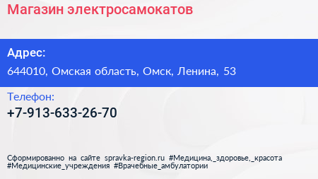 Магазин электросамокатов по адресу 644010, Омская область, Омск, Ленина, 53 в дальнейшем Организация, размещена в следующих категориях: