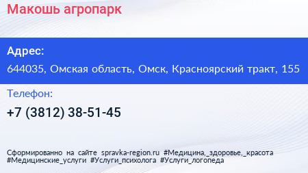 Макошь, агропарк по адресу 644035, Омская область, Омск, Красноярский тракт, 155 в дальнейшем Организация, размещена в следующих категориях: