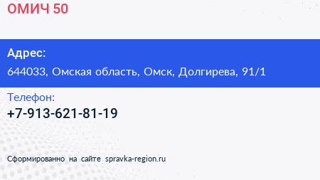 ОМИЧ-50 по адресу 644033, Омская область, Омск, Долгирева, 91/1 в дальнейшем Организация, размещена в следующих категориях: