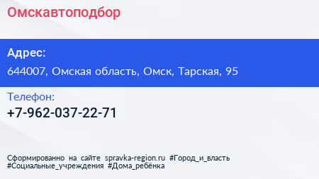 Омскавтоподбор по адресу 644007, Омская область, Омск, Тарская, 95 в дальнейшем Организация, размещена в следующих категориях:
