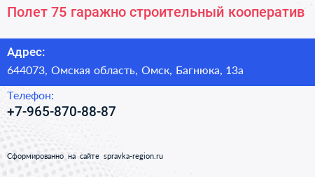 Полет-75, гаражно-строительный кооператив по адресу 644073, Омская область, Омск, Багнюка, 13а в дальнейшем Организация, размещена в следующих категориях: