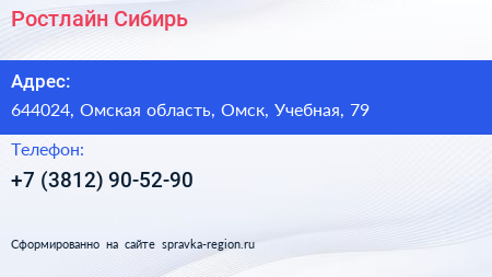 Ростлайн Сибирь по адресу 644024, Омская область, Омск, Учебная, 79 в дальнейшем Организация, размещена в следующих категориях: