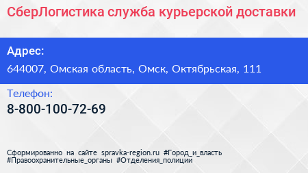СберЛогистика, служба курьерской доставки по адресу 644007, Омская область, Омск, Октябрьская, 111 в дальнейшем Организация, размещена в следующих категориях: