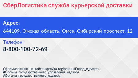 СберЛогистика, служба курьерской доставки по адресу 644109, Омская область, Омск, Сибирский проспект, 12 в дальнейшем Организация, размещена в следующих категориях: