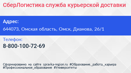 СберЛогистика, служба курьерской доставки по адресу 644073, Омская область, Омск, Дианова, 26/1 в дальнейшем Организация, размещена в следующих категориях: