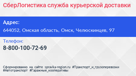 СберЛогистика, служба курьерской доставки по адресу 644052, Омская область, Омск, Челюскинцев, 97 в дальнейшем Организация, размещена в следующих категориях: