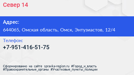 Север-14 по адресу 644065, Омская область, Омск, Энтузиастов, 12/4 в дальнейшем Организация, размещена в следующих категориях: