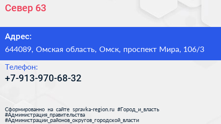 Север 63 по адресу 644089, Омская область, Омск, проспект Мира, 106/3 в дальнейшем Организация, размещена в следующих категориях: