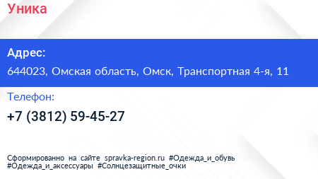 Уника по адресу 644023, Омская область, Омск, Транспортная 4-я, 11 в дальнейшем Организация, размещена в следующих категориях: