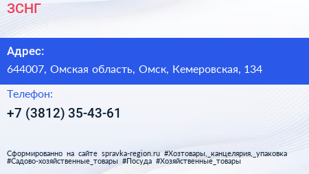 ЗСНГ по адресу 644007, Омская область, Омск, Кемеровская, 134 в дальнейшем Организация, размещена в следующих категориях:
