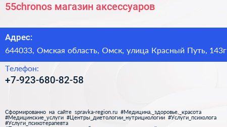 55chronos, магазин аксессуаров по адресу 644033, Омская область, Омск, улица Красный Путь, 143г в дальнейшем Организация, размещена в следующих категориях: