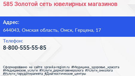 585 Золотой, сеть ювелирных магазинов по адресу 644043, Омская область, Омск, Герцена, 17 в дальнейшем Организация, размещена в следующих категориях: