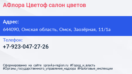 АФлора. Цветоф, салон цветов по адресу 644090, Омская область, Омск, Заозёрная, 11/1а в дальнейшем Организация, размещена в следующих категориях:
