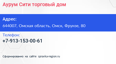 Аурум Сити, торговый дом по адресу 644007, Омская область, Омск, Фрунзе, 80 в дальнейшем Организация, размещена в следующих категориях: