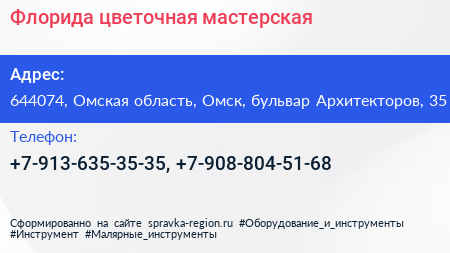 Флорида, цветочная мастерская по адресу 644074, Омская область, Омск, бульвар Архитекторов, 35 в дальнейшем Организация, размещена в следующих категориях: