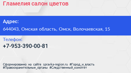 Гламелия, салон цветов по адресу 644043, Омская область, Омск, Волочаевская, 15 в дальнейшем Организация, размещена в следующих категориях: