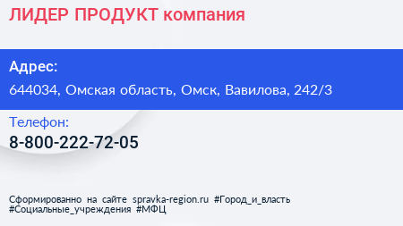ЛИДЕР-ПРОДУКТ, компания по адресу 644034, Омская область, Омск, Вавилова, 242/3 в дальнейшем Организация, размещена в следующих категориях: