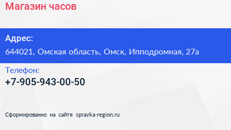 Магазин часов по адресу 644021, Омская область, Омск, Ипподромная, 27а в дальнейшем Организация, размещена в следующих категориях: