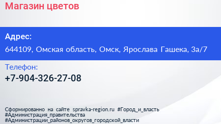 Магазин цветов по адресу 644109, Омская область, Омск, Ярослава Гашека, 3а/7 в дальнейшем Организация, размещена в следующих категориях: