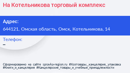 На Котельникова, торговый комплекс по адресу 644121, Омская область, Омск, Котельникова, 14 в дальнейшем Организация, размещена в следующих категориях: