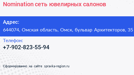Nomination, сеть ювелирных салонов по адресу 644074, Омская область, Омск, бульвар Архитекторов, 35 в дальнейшем Организация, размещена в следующих категориях: