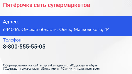 Пятëрочка, сеть супермаркетов по адресу 644046, Омская область, Омск, Маяковского, 44 в дальнейшем Организация, размещена в следующих категориях: