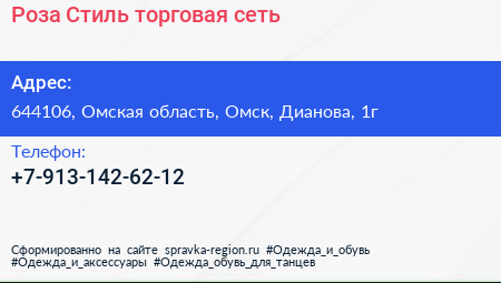Роза Стиль, торговая сеть по адресу 644106, Омская область, Омск, Дианова, 1г в дальнейшем Организация, размещена в следующих категориях: