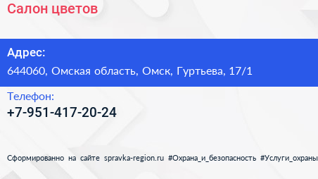 Салон цветов по адресу 644060, Омская область, Омск, Гуртьева, 17/1 в дальнейшем Организация, размещена в следующих категориях: