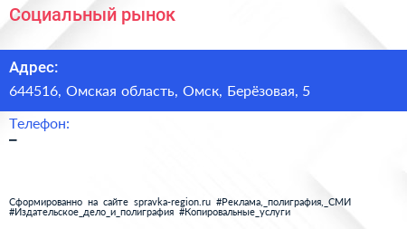 Социальный рынок по адресу 644516, Омская область, Омск, Берёзовая, 5 в дальнейшем Организация, размещена в следующих категориях: