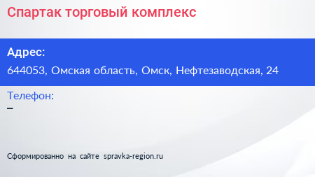Спартак, торговый комплекс по адресу 644053, Омская область, Омск, Нефтезаводская, 24 в дальнейшем Организация, размещена в следующих категориях: